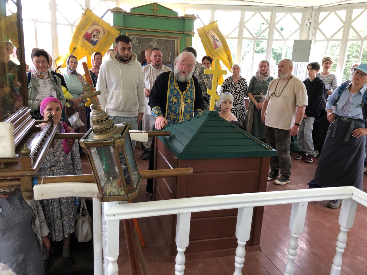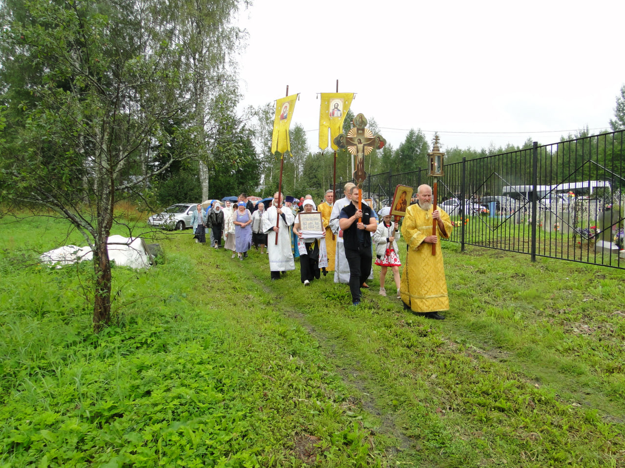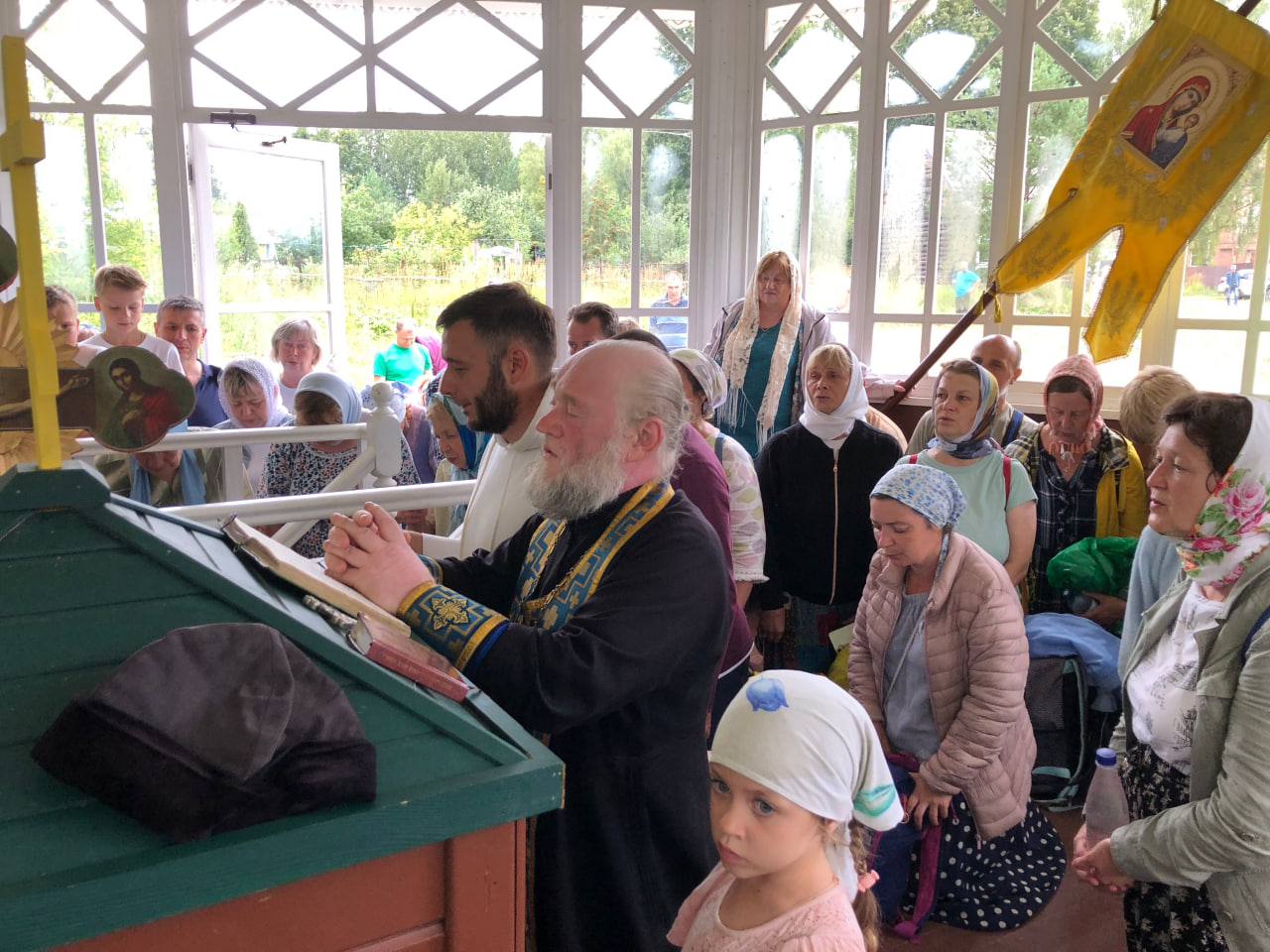 В конце литургии состоялся крестный ход вокруг церкви. Затем прихожанам и паломникам было предложено праздничное угощение, после чего начался традиционный крестный ход из Любовниково в деревню Песочное, к месту явления в 1622 году чудотворного образа Царицы Небесной. По пути следования крестного хода – в деревне Терентьево – и по окончании хода, на святом источнике Игрицкого подворья Свято-Троицкого Ипатьевского мужского монастыря, совершались молебны.