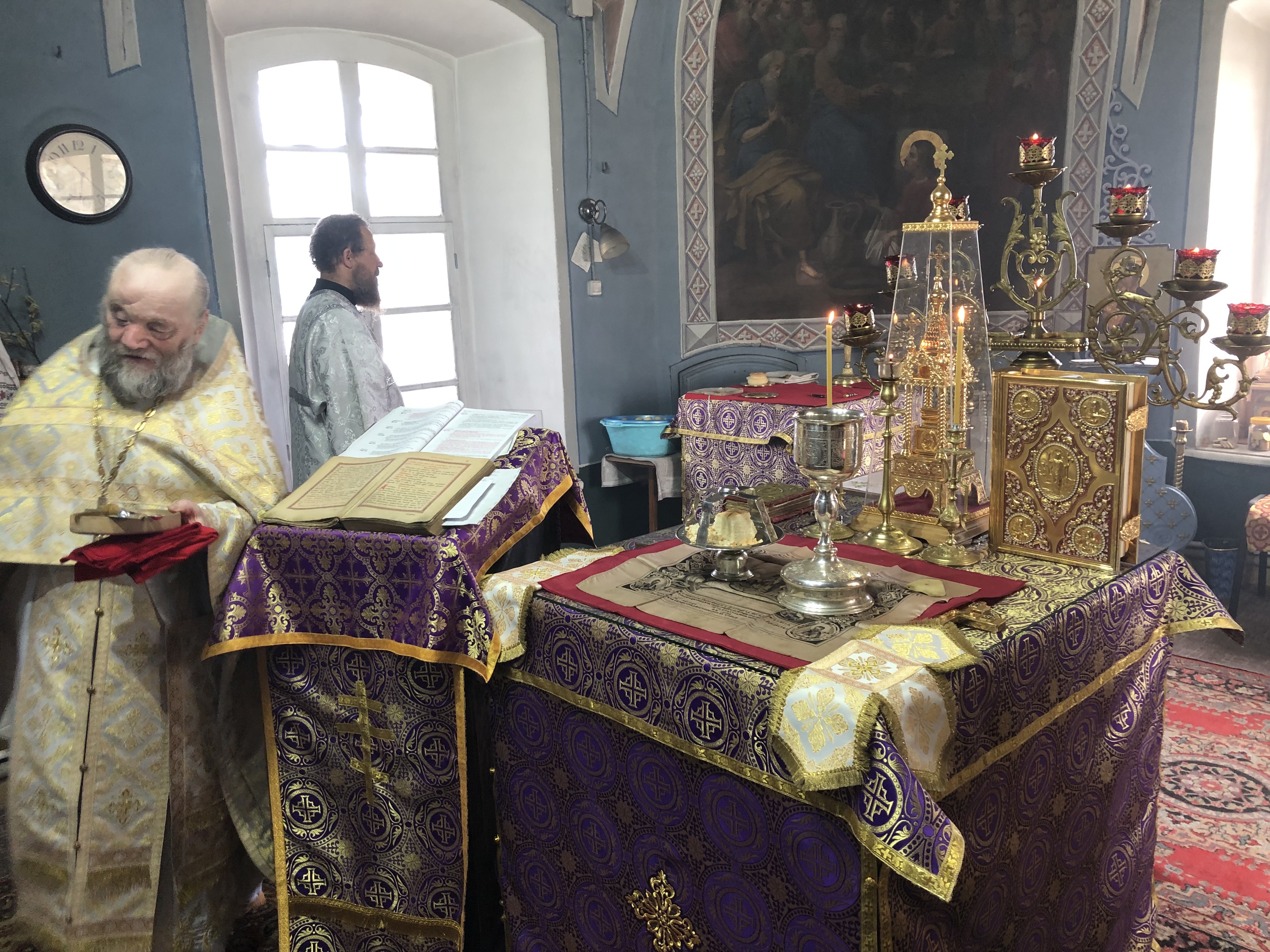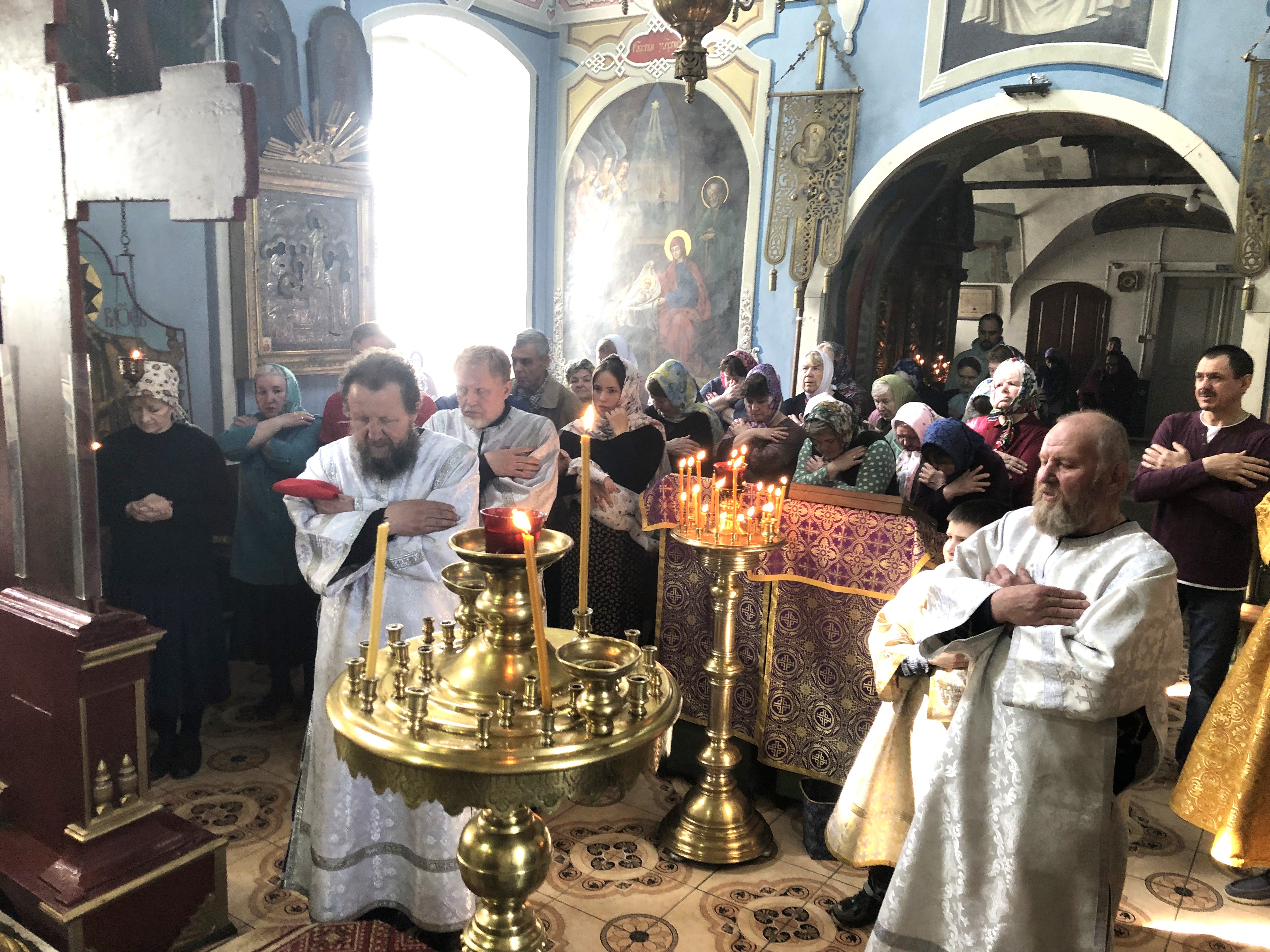 27 апреля протоиерей Михаил Бобонин служил всенощное бдение в Покровской церкви поселка Зарубино, а 28 апреля, в Неделю ваий (Вербное воскресенье) – совершил Божественную литургию святителя Иоанна Златоуста в Воскресенской церкви села Любовниково.