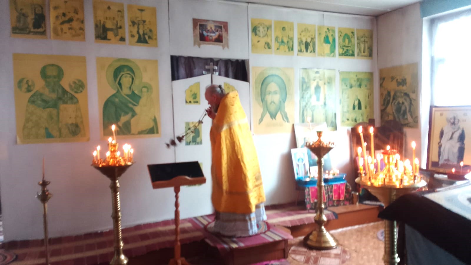 2 мая протоиерей Михаил Бобонин совершил вечерню в соединении с Божественной литургией святителя Василия Великого и утреню с чтением 12-ти Евангелий в Покровской церкви поселка Зарубино.