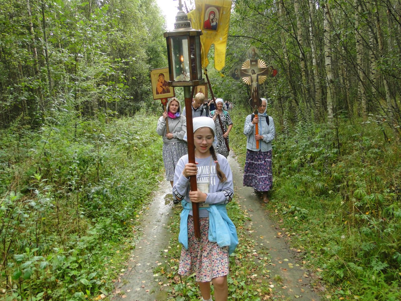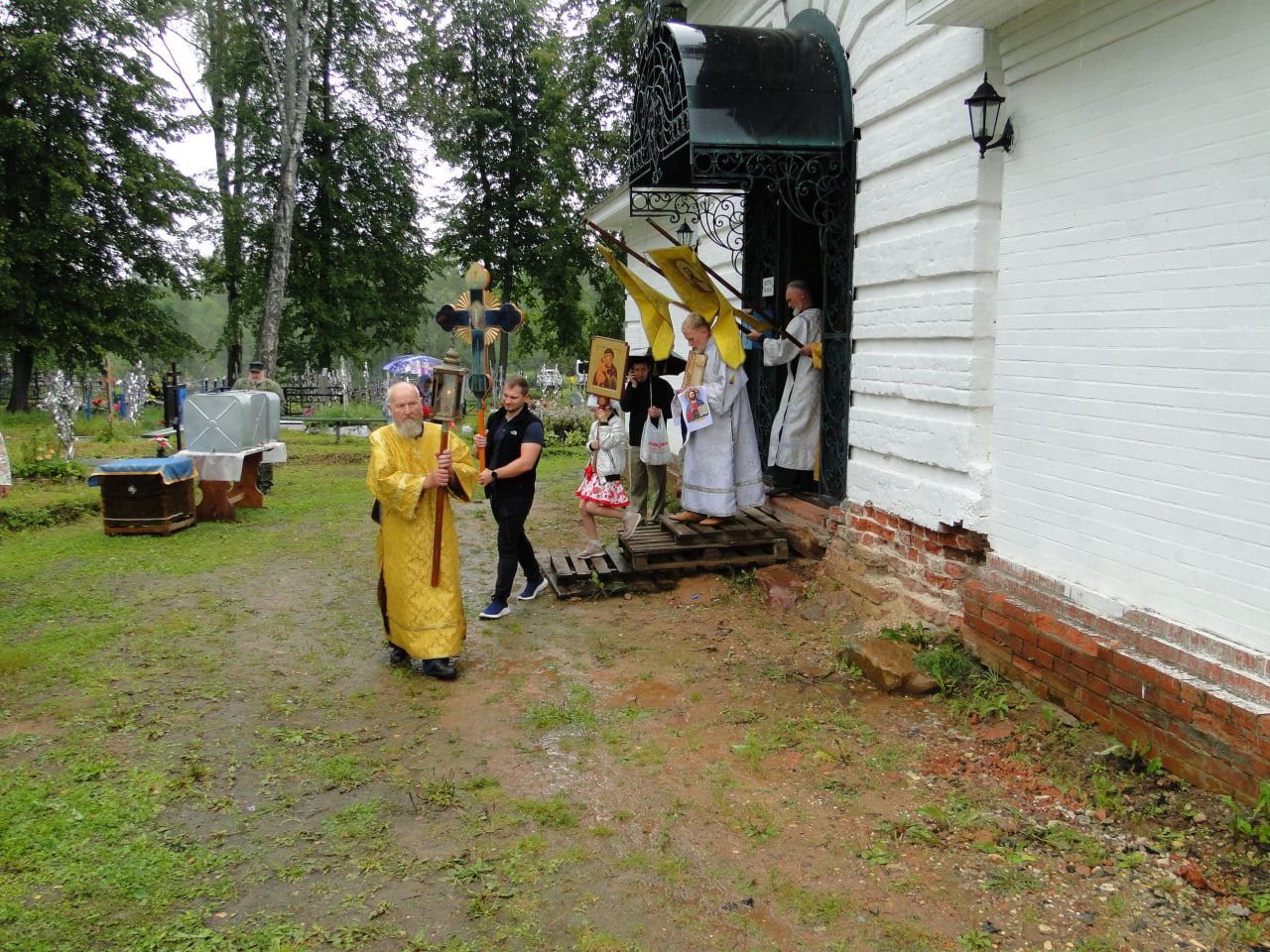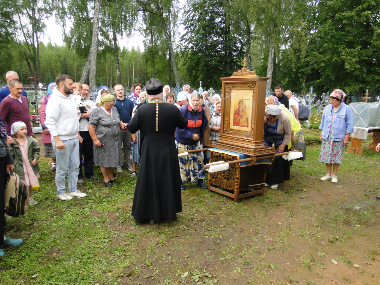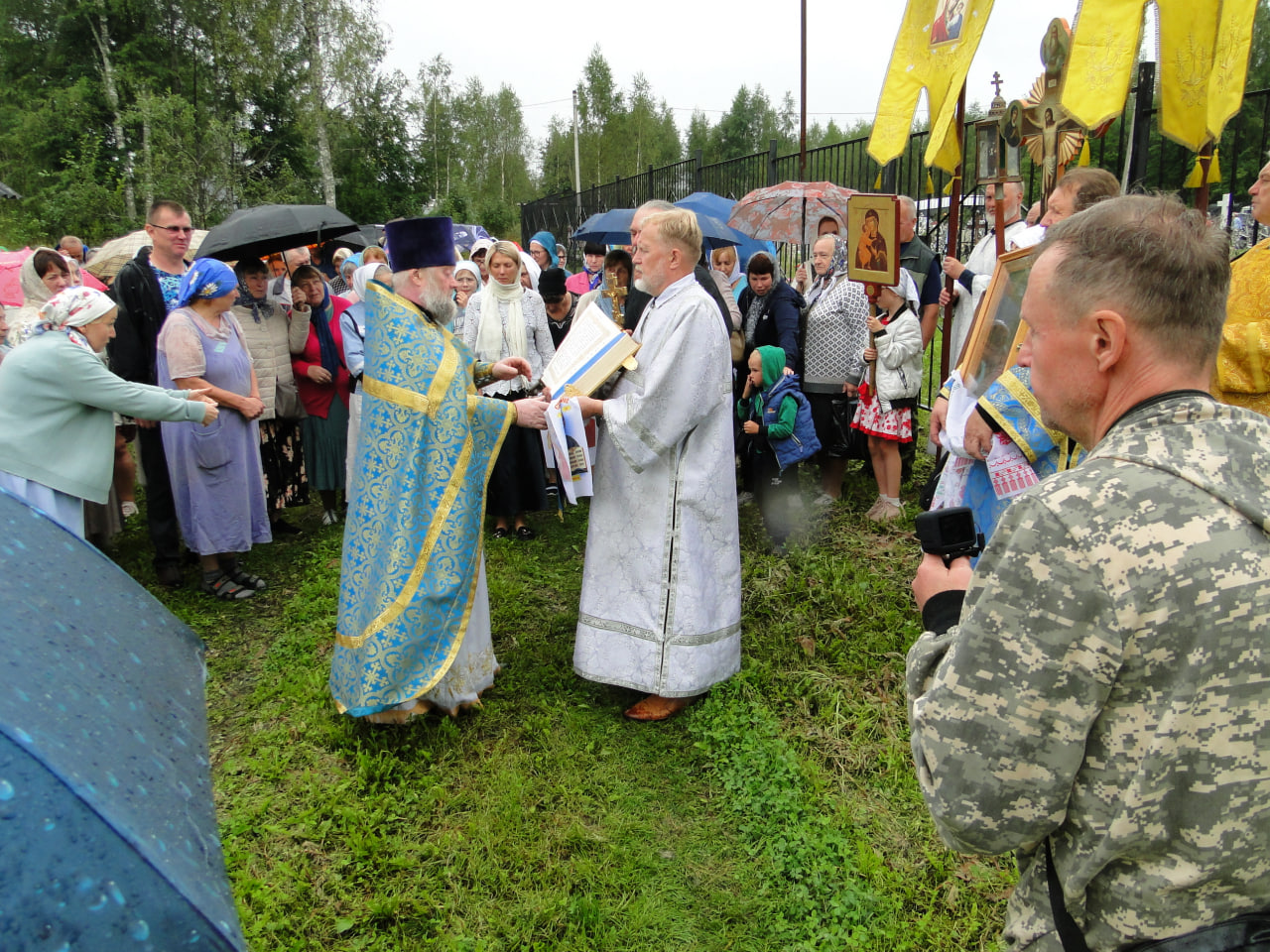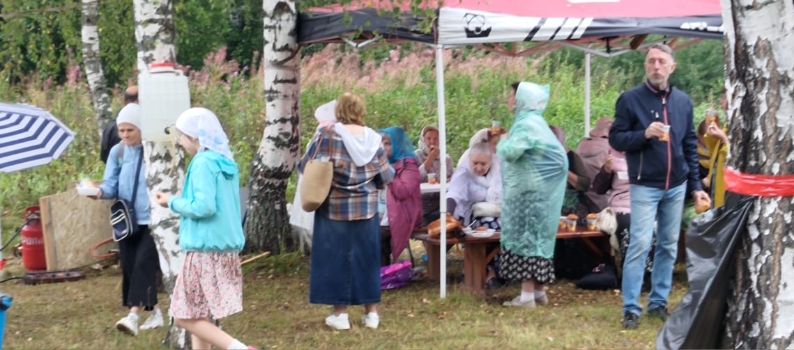 В конце литургии состоялся крестный ход вокруг церкви. Затем прихожанам и паломникам было предложено праздничное угощение, после чего начался традиционный крестный ход из Любовниково в деревню Песочное, к месту явления в 1622 году чудотворного образа Царицы Небесной. По пути следования крестного хода – в деревне Терентьево – и по окончании хода, на святом источнике Игрицкого подворья Свято-Троицкого Ипатьевского мужского монастыря, совершались молебны.