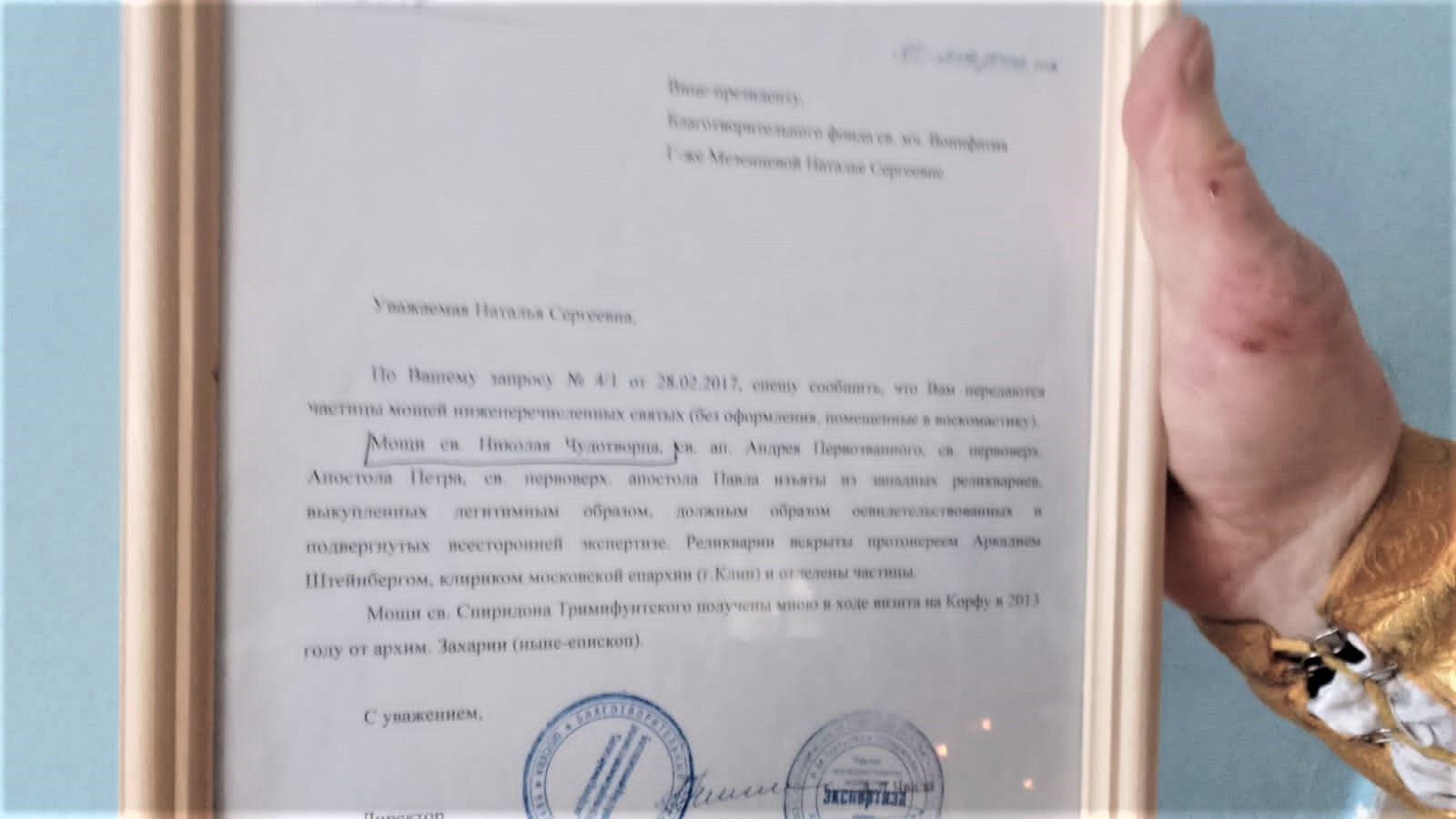 На богослужение были принесены святыни, переданные в дар нашему приходу: икона святителя и чудотворца Николая с частицей мощей этого угодника Божия и деревянный крест, изготовленный на Святой Горе Афон.