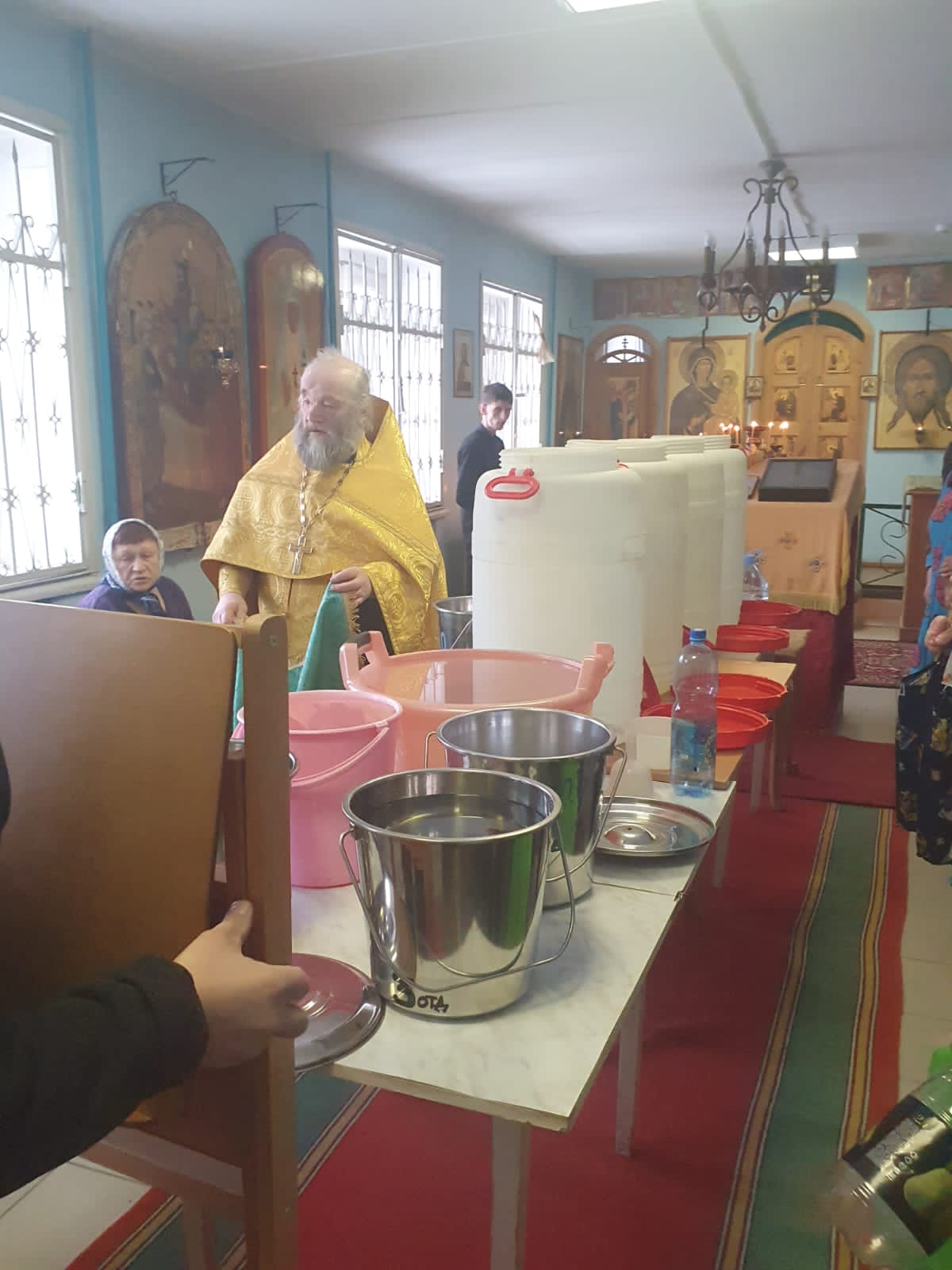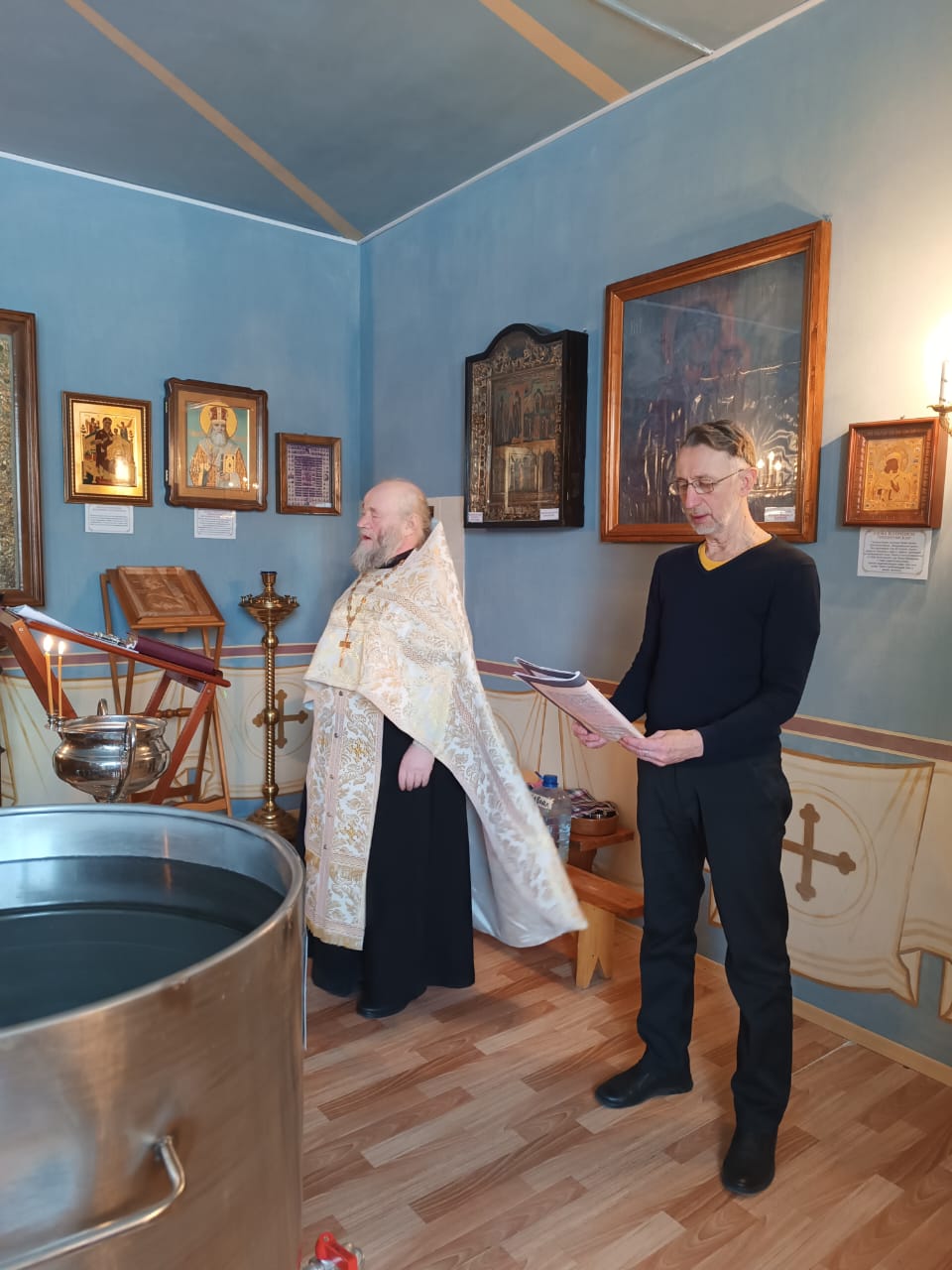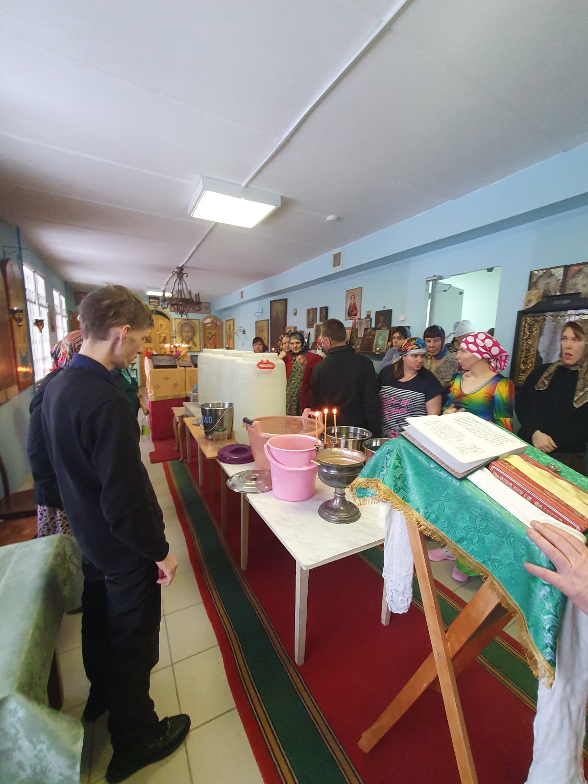 В Крещенский сочельник протоиерей Михаил Бобонин, совершив богослужение в Покровской церкви поселка Зарубино, прибыл в поселок Хутор 1 Мая. Здесь в домовых церквах – Елисаветинском храме психоневрологического интерната и Скорбященском храме детского дома-интерната – состоялось великое освящение воды.