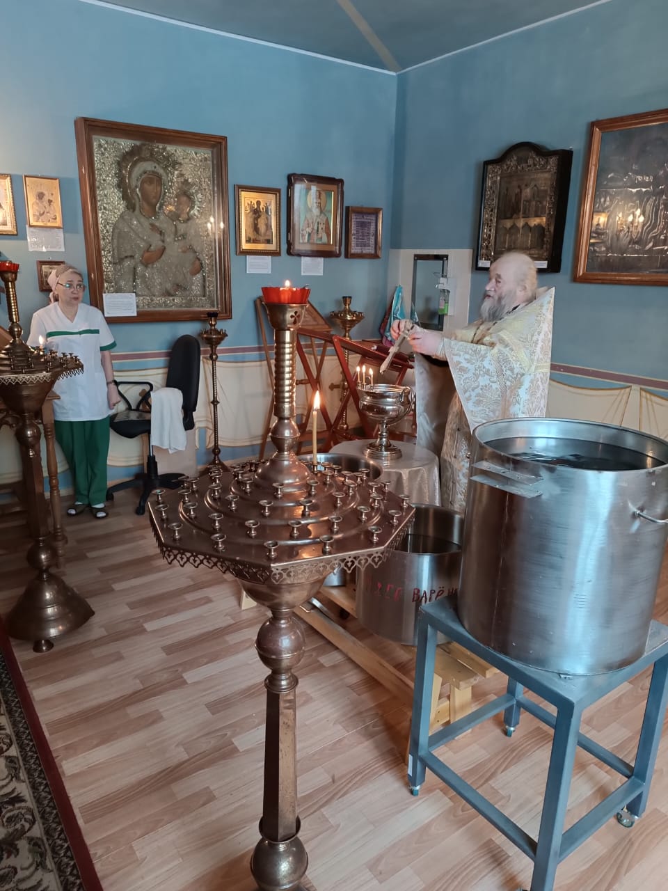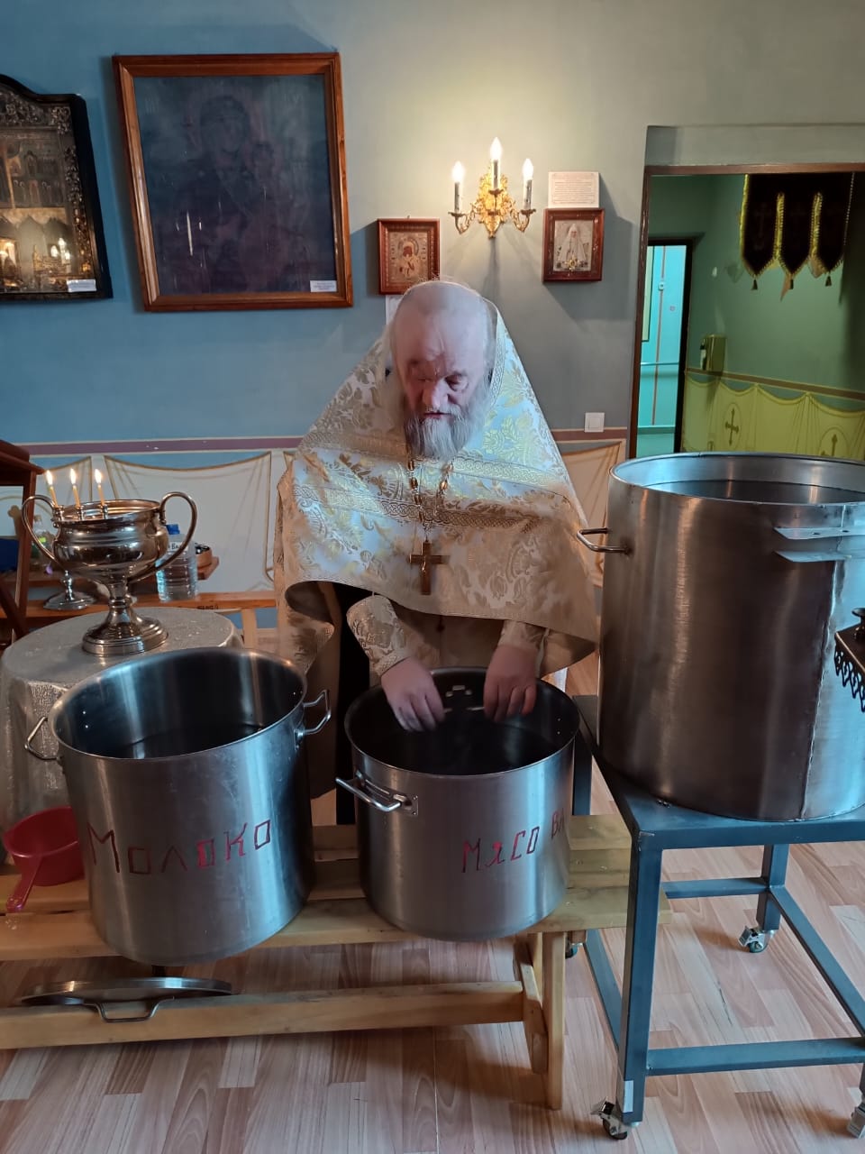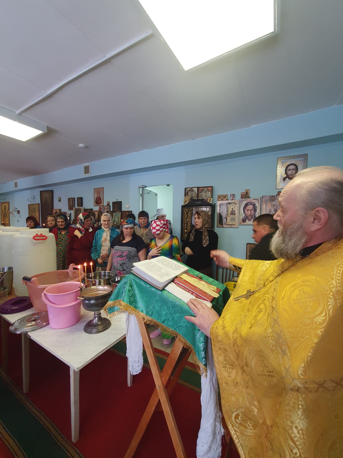 В Крещенский сочельник протоиерей Михаил Бобонин, совершив богослужение в Покровской церкви поселка Зарубино, прибыл в поселок Хутор 1 Мая. Здесь в домовых церквах – Елисаветинском храме психоневрологического интерната и Скорбященском храме детского дома-интерната – состоялось великое освящение воды.