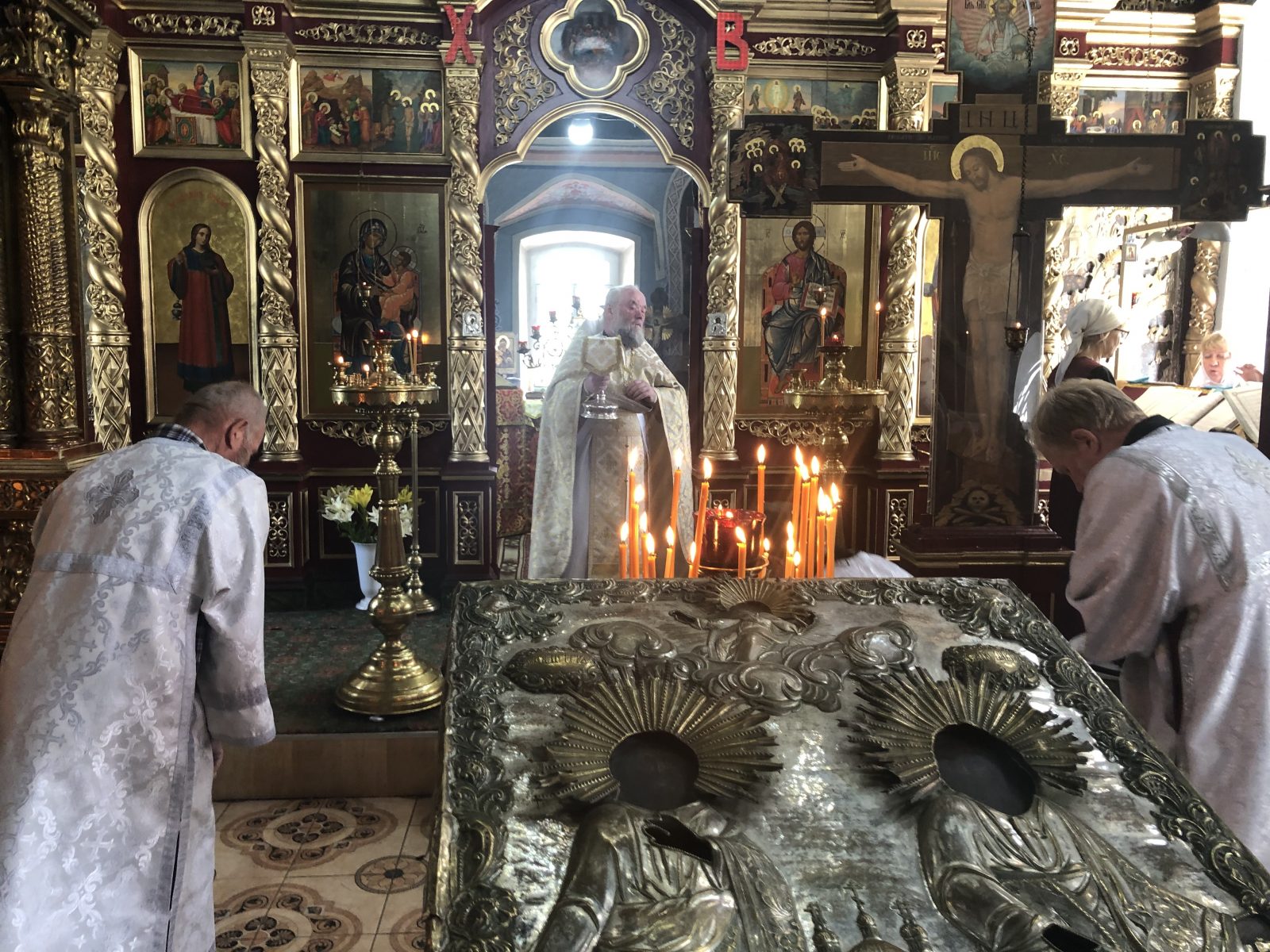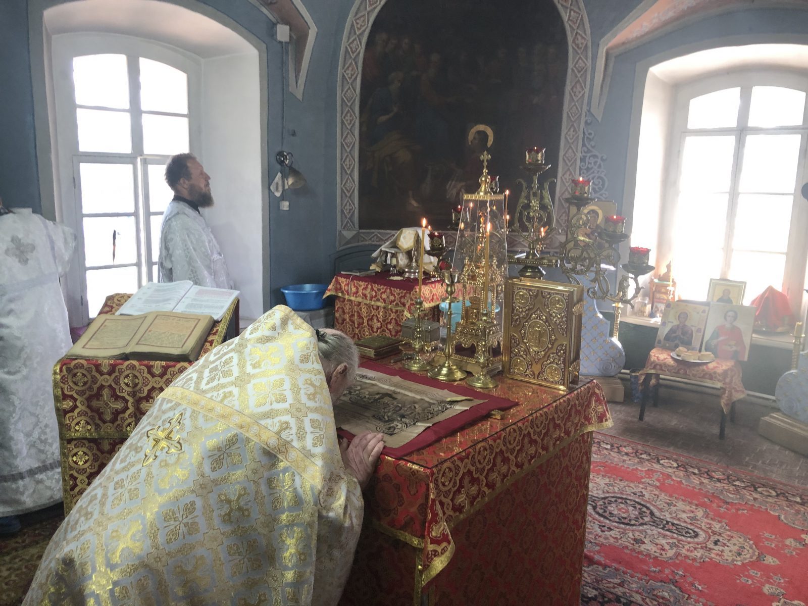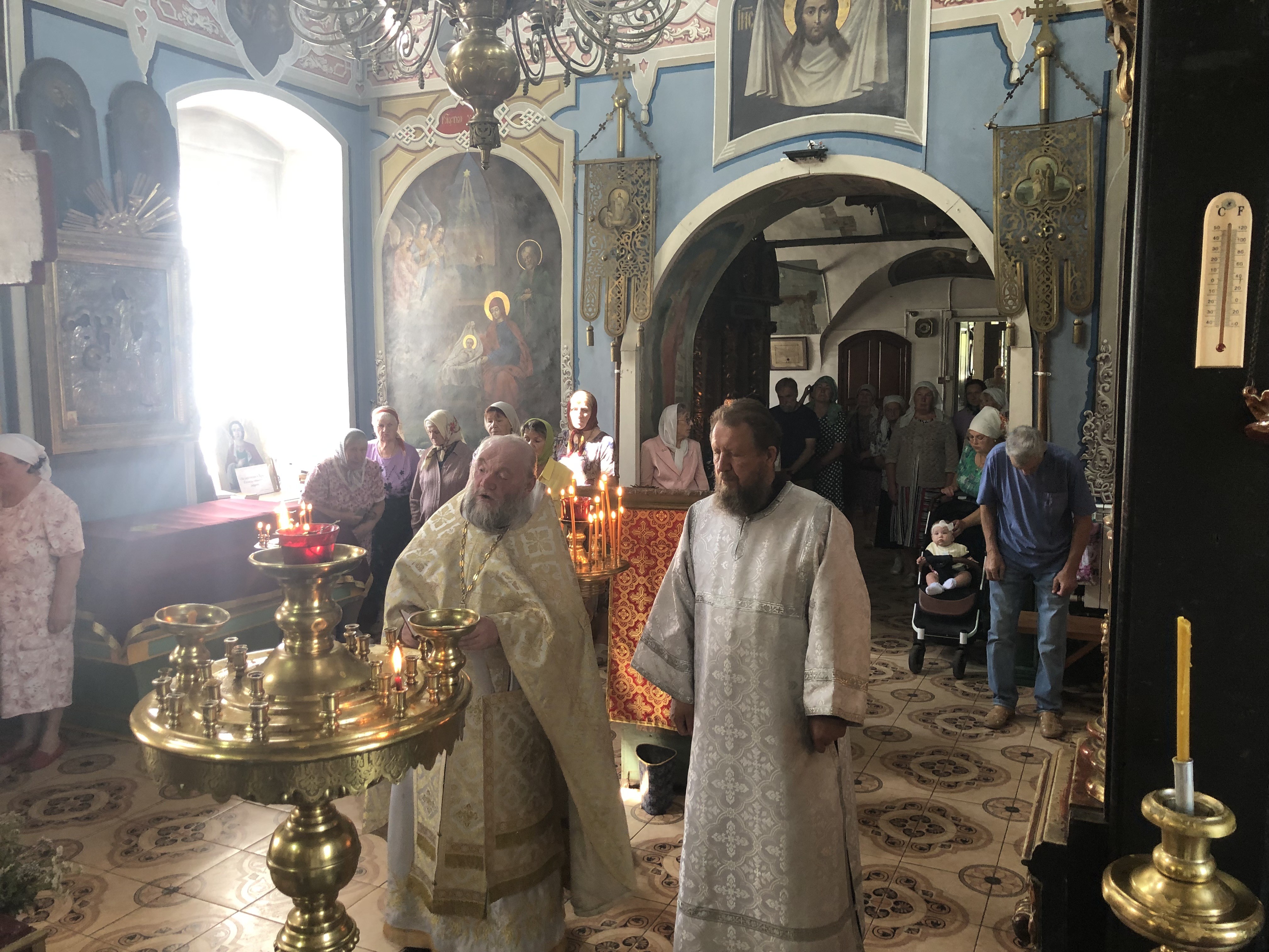 Вечером 11 июля протоиерей Михаил Бобонин совершил в Воскресенской церкви села Любовниково всенощное бдение, а 12 июля, в день памяти святых славных и всехвальных первоверховных апостолов Петра и Павла – Божественную литургию и водосвятный молебен.